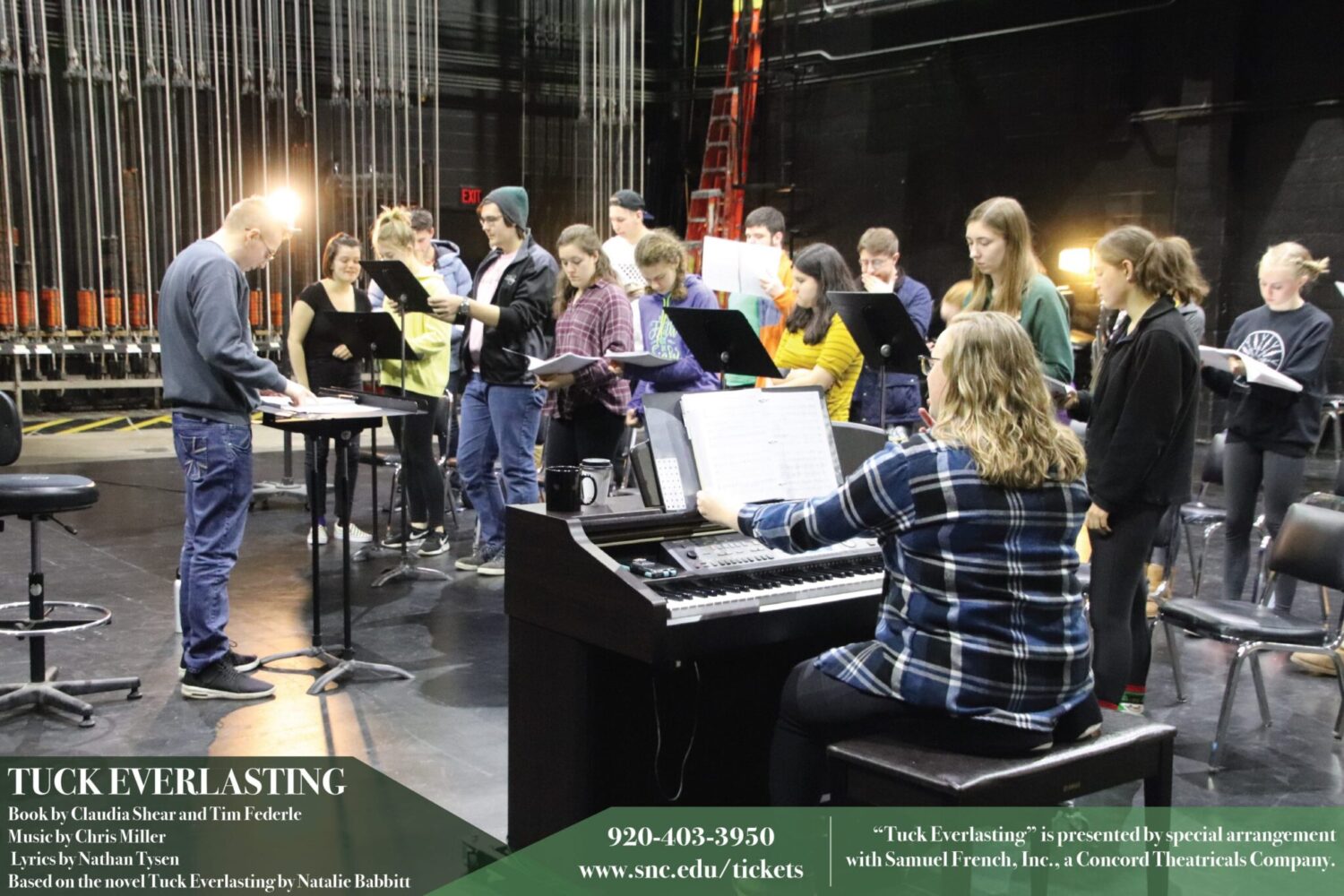 2020: Tuck Everlasting “Wheel” “Beautiful Day” “Everything’s Golden” Winnie Foster & Jesse Tuck “Fun at the Fair” “Top of the World” Winnie Foster & Jesse Tuck Winnie Sings to Toad Jesse Tuck Mae Tuck Miles Tuck Man in the Yellow Suit Behind the Scenes Kylie Marsden teaching blocking Nate Ortiz leading vocal rehearsal Tech assembling the set Tech assembling the set Brittany Vosen teaching Ensemble men how to do makeup Jason Holz conducting the pit Cast members learning the ballet Michael Houlihan discussing characterization Tech assembling the set Photos and Graphic Design by Annicka Rabida